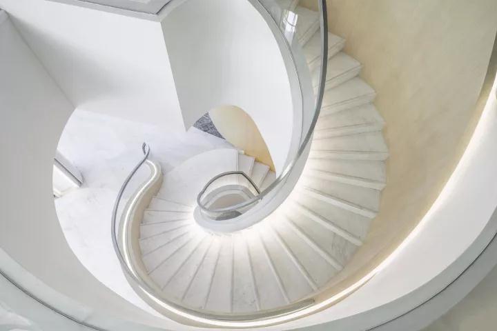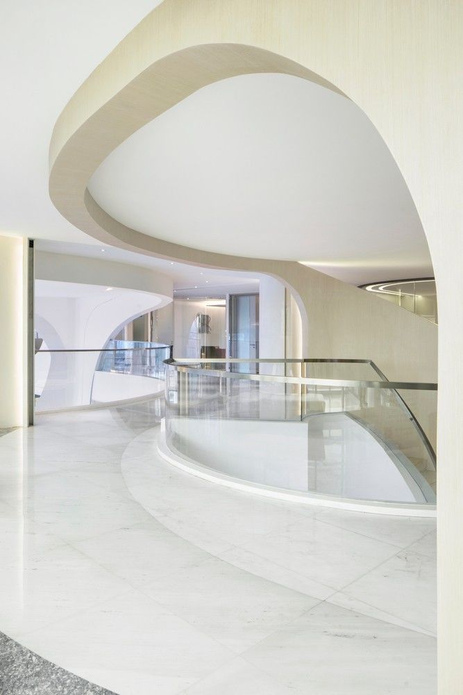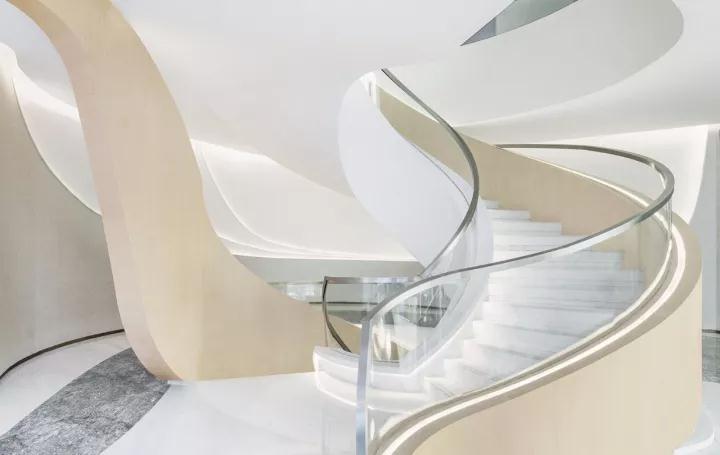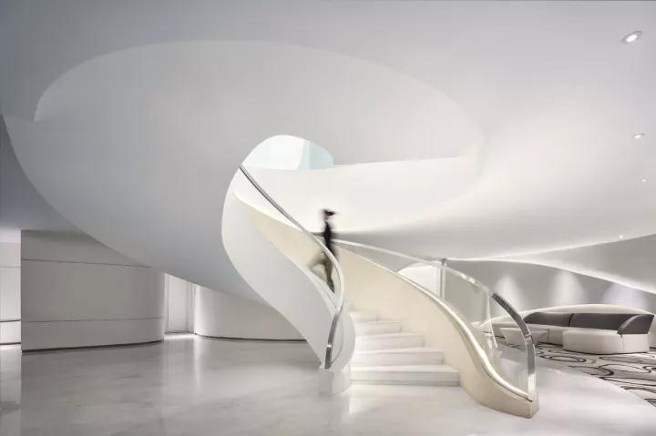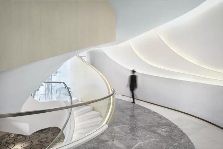 隨著蜿蜒明亮的線條與螺旋形的樓梯,用者逐步過渡以至最后完全融入未來的空間。