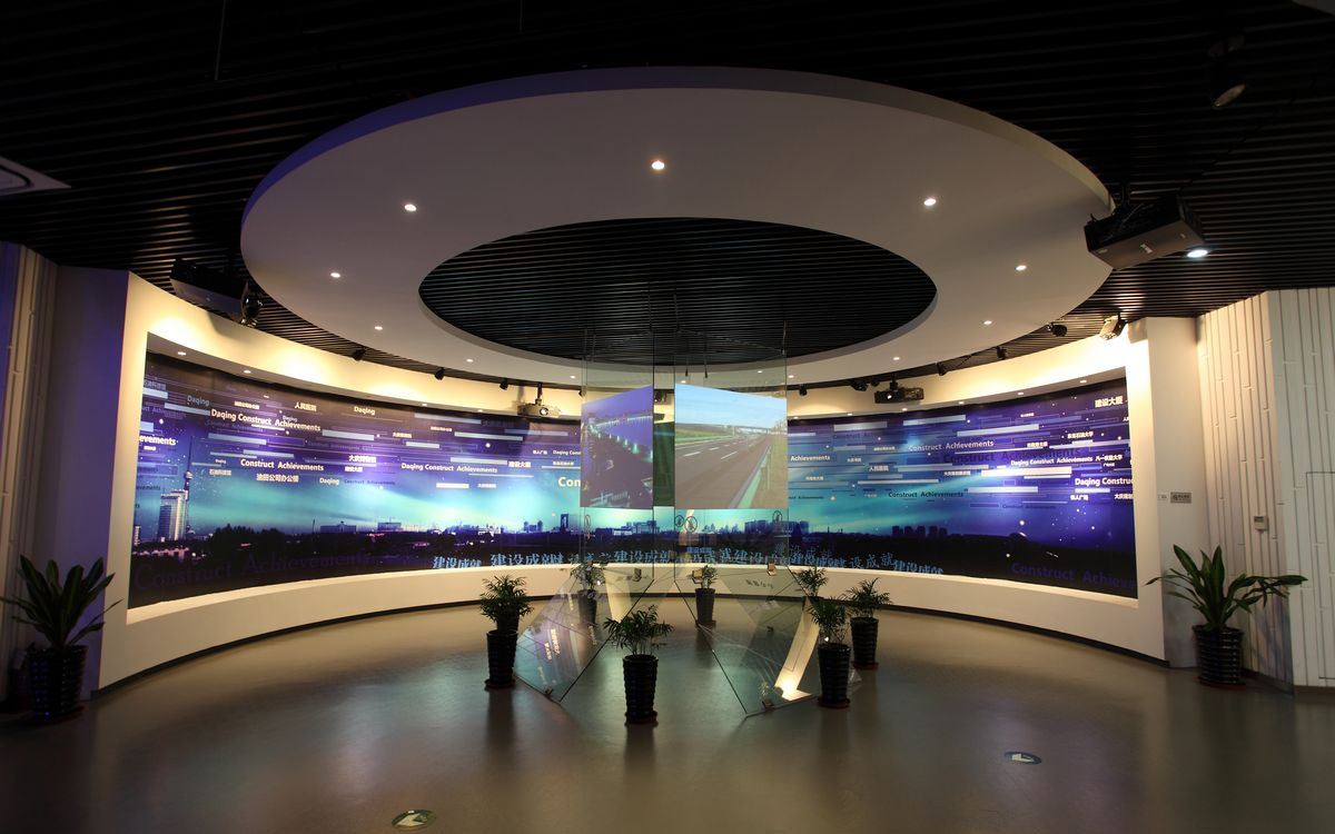 環(huán)幕投影,環(huán)幕投影是一個視聽高度沉浸式的虛擬模擬顯示環(huán)境,還可加入球幕投影技術(shù)等多種多媒體展示技術(shù),以緊密配合紀念館主題和場地限制,打造出先進的多媒體紀念館,給人以身臨其境的感覺。
